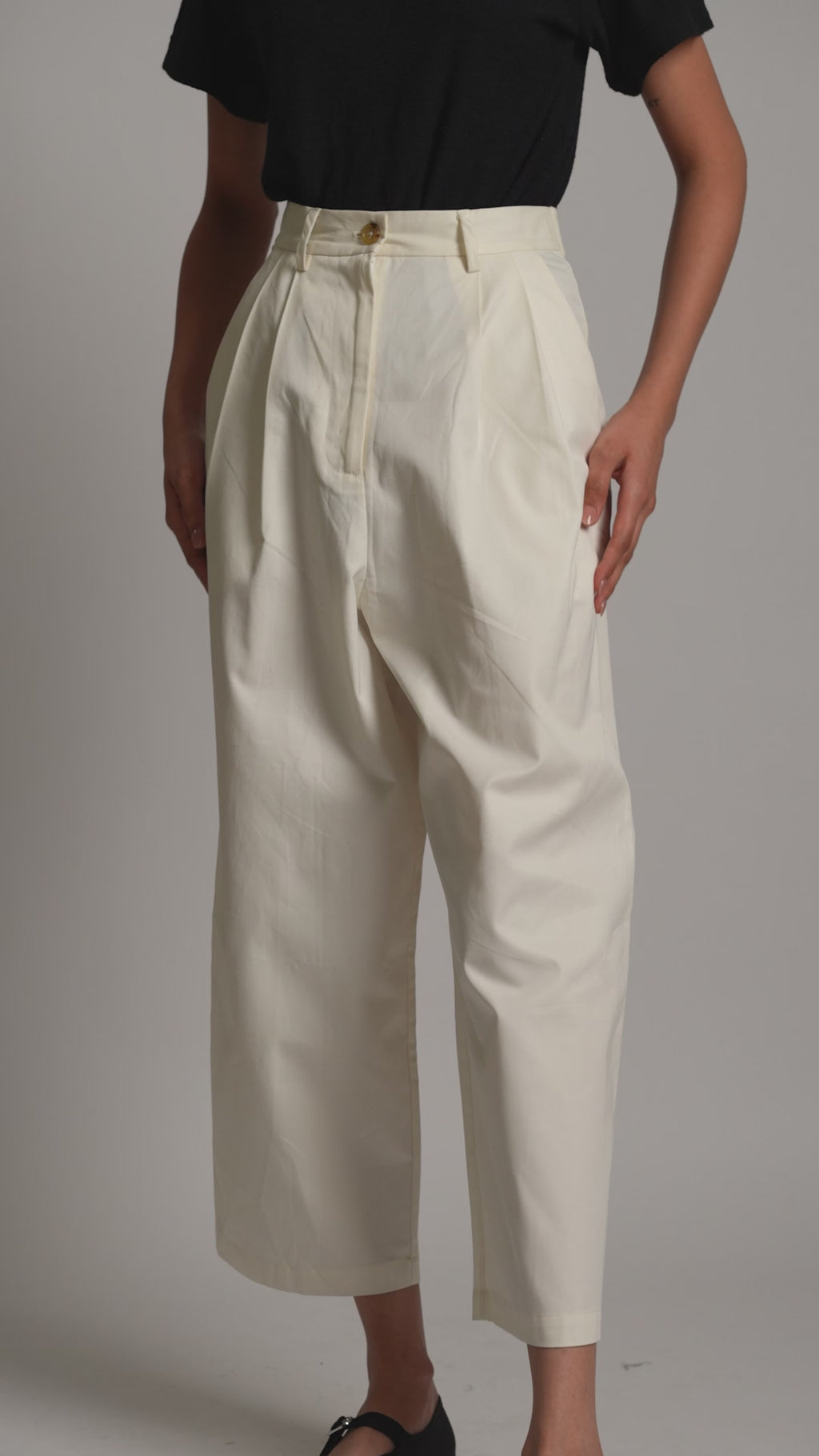Introducing our versatile Workwear-Inspired pleated front Boyfriend Trousers, crafted from organic cotton twill for everyday comfort and style. Designed with a tailored waistband, convenient side pockets, and a sleek zip, this trouser merges functionality with sophistication. Pair it with any of our tees or tanks for a laid-back ensemble, or elevate your daytime look by adding our Museo Button Up. 24.5" Inseam.