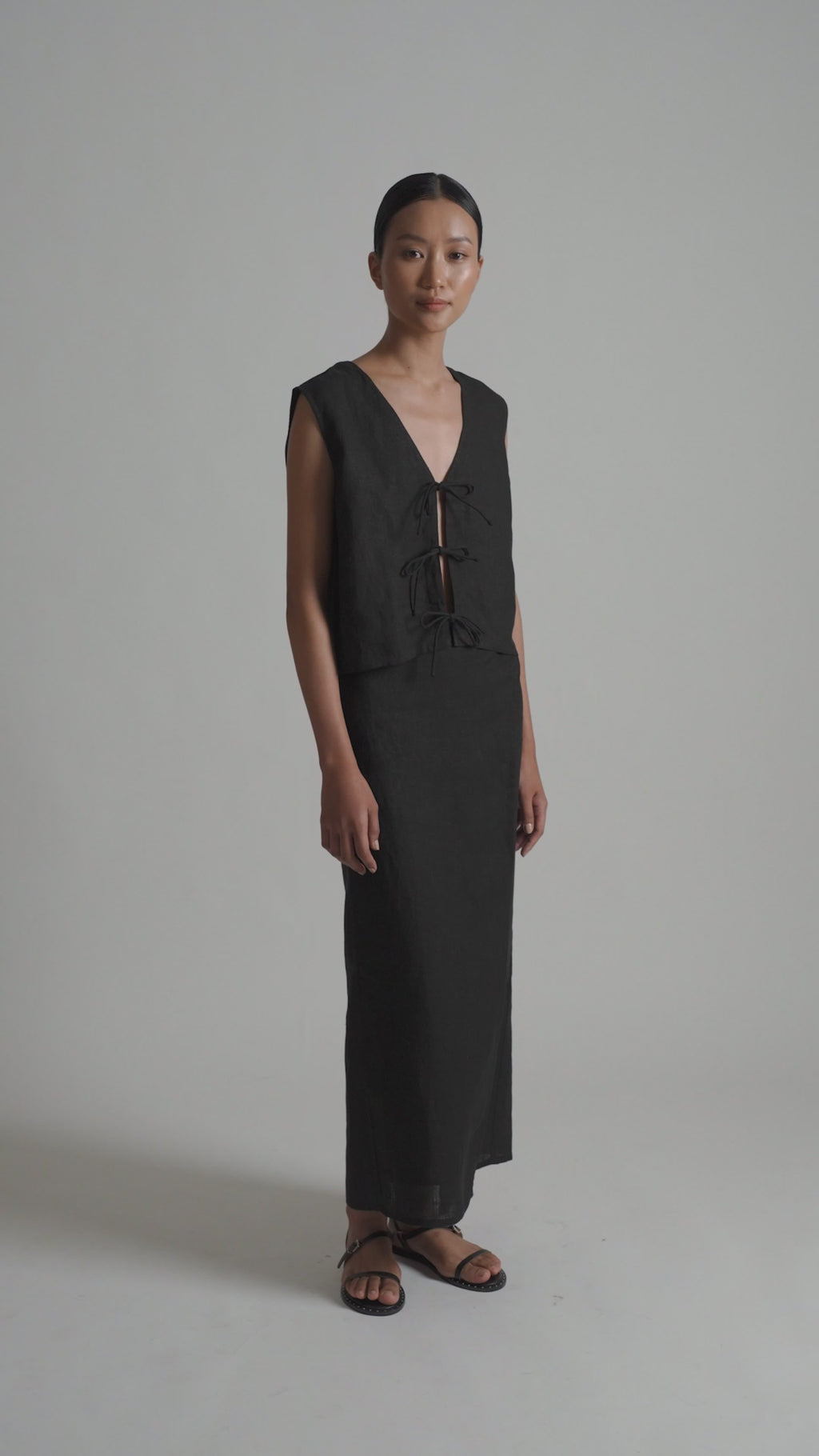 This wrap skirt features a flattering high-rise fit and a timeless wrap silhouette that falls gracefully to a midi length. Made from organic linen, it’s breathable and lightweight, perfect for warm weather. The self-tie side closure adds an adjustable and effortless finish, making this skirt a versatile and elegant addition to your wardrobe.